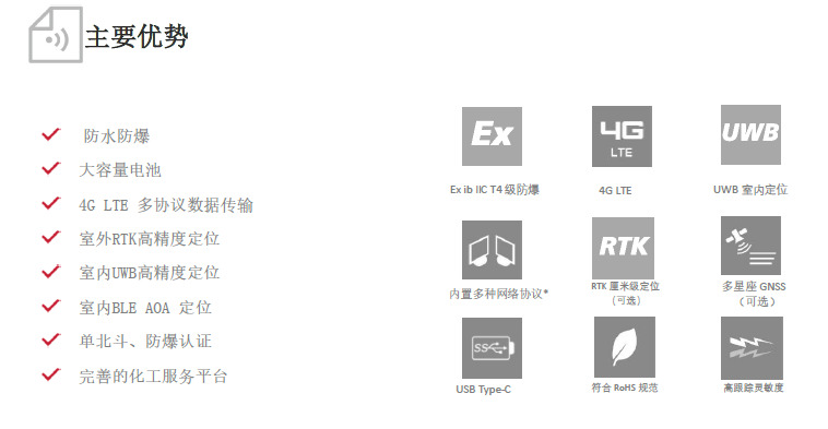 The PH-C10 series positioning work card is designed with a built-in 2500mAh large capacity battery to ensure long-lasting battery life for personnel wearing and using it. The shell is made of special explosion-proof materials, which are resistant to pressure and explosion, and are sturdy and durable. When used with RTK high-precision positioning base stations, PH-C10 supports centimeter level RTK high-precision positioning, and when used with indoor UWB positioning base stations, it supports centimeter level indoor high-precision positioning.