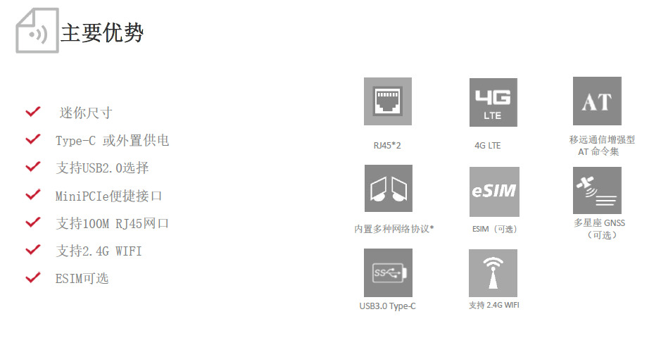 PH-MP_RJ45 is designed to use a compact Type-C power supply or an external 1.5mm terminal power supply port, supporting a wide voltage supply of 5V-16V, eSIM, and dual 100Mbps RJ45 network ports to achieve multi device internet access. The overall size is compact, easy to carry, plug and play, and solves the problem of no network and complex operation outdoors to the greatest extent possible. Equipped with 4 IPEX1 generation RF connectors for easy selection during use. The main control adopts MTK scheme and supports UART communication. Support secondary development.
