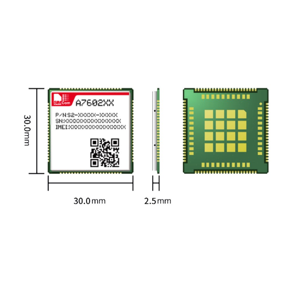 A7602E adopts LCC+LGA form factor and is compatible with SIM5320/SIM5360 series(UMTS/HSPA+ modules), and SIM7600/SIM7600-H series(LTE modules), which enables smooth migration from 3G products to LTE products, and greatly facilitates more compatible product design for the customer needs.